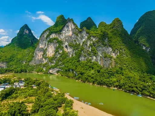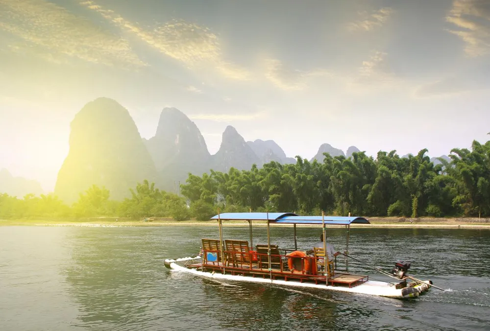 The Yulong River, a tributary of the Lijiang River, is known as “the Little Lijiang River”. Bamboo rafting on the Yulong River is a classic experience. The river is gentle and clear, and the mountains on both sides are green and beautiful. Unlike the busy Lijiang River cruise, the Yulong River is more quiet and beautiful. The local boatmen have inherited the tradition of bamboo rafting for generations, and some can sing folk songs. During the rafting, visitors can enjoy the idyllic scenery of rural Guangxi, with farmers working in the fields and ancient stone bridges spanning the river, feeling the peace and tranquility away from the hustle and bustle of the city.