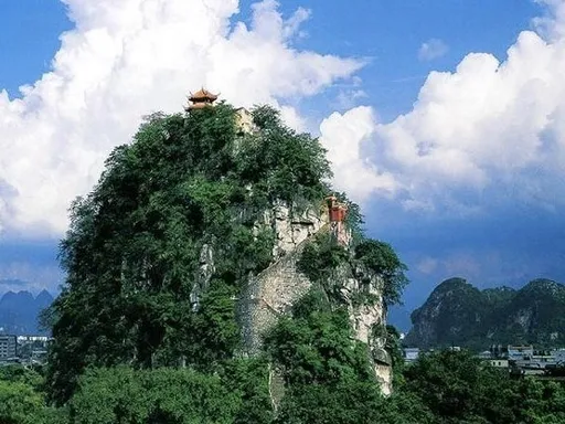 Diecai Mountain, located on the west bank of the Li River, gets its name because its layered rocks look like stacked colored brocades. It has been a famous scenic spot since the Tang Dynasty, and many literati and painters have come here to paint and write poems. There are many cultural relics and historic sites on the mountain, such as the Diecai Pavilion and the Zenggong Temple. The viewing platform on the top of the mountain is an excellent place to overlook the panoramic view of Guilin’s urban area and the winding Li River. The mountain is covered with green vegetation, and the air is fresh. It is both a natural scenic area and a cultural mountain with a long history.