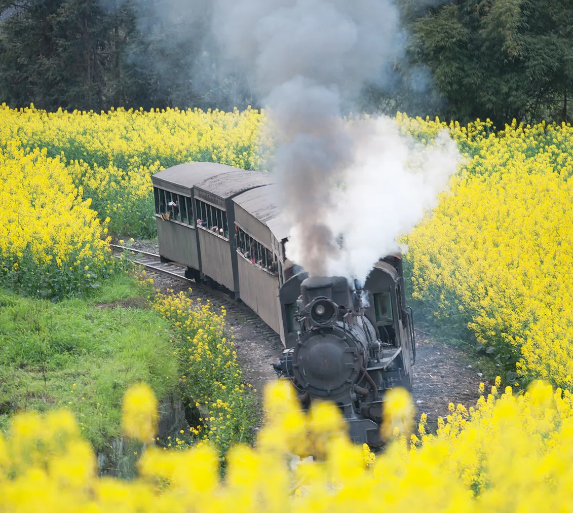 The Jiayang Small Train in Qianwei County is a well-preserved steam locomotive train line in China, originally built in 1958 for coal transportation. Today, it has become a unique tourist attraction. The train travels through the idyllic countryside, passing through tunnels, bridges and terraced fields. In spring, the railway is lined with golden rape flowers, creating a fairy-tale-like scene. The train stops at small stations such as Bagou Old Town, where visitors can experience the nostalgic atmosphere of the 1950s and 1960s, visit the coal mine museum, and enjoy the local rural scenery and folk customs.