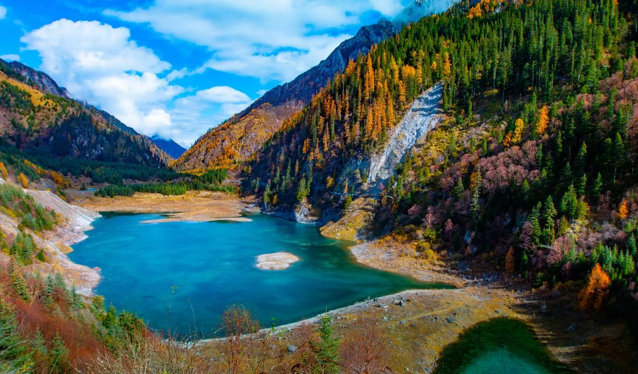 Zechawa Valley is one of the three major valleys in Jiuzhaigou, located in the northern part of the scenic area. It is the longest valley in Jiuzhaigou, with a length of 18 kilometers, featuring unique plateau landscape. The valley has alpine meadows, forests and lakes, with the highest lake in Jiuzhaigou, Changhai, located at the end of the valley. Along the valley, there are many beautiful small lakes and waterfalls, with clear water and beautiful scenery. In autumn, the forests in the valley are dyed golden, red and orange, forming a spectacular colorful forest landscape, attracting a large number of photographers and tourists.